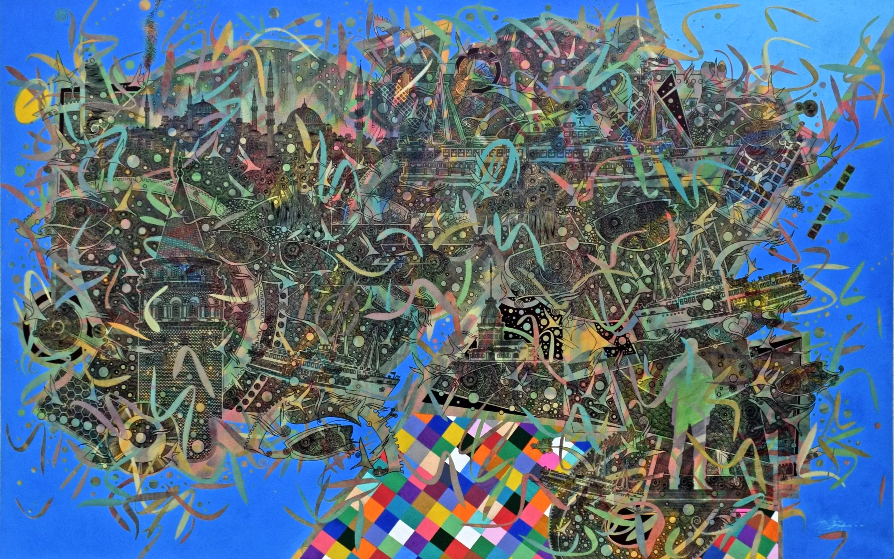 Azer'de Anadolu sanat sergisi var.Azerbaycan'da sergilenecek büyük bir tablo, 2025 yapımı, akrilik boya kullanıldı.