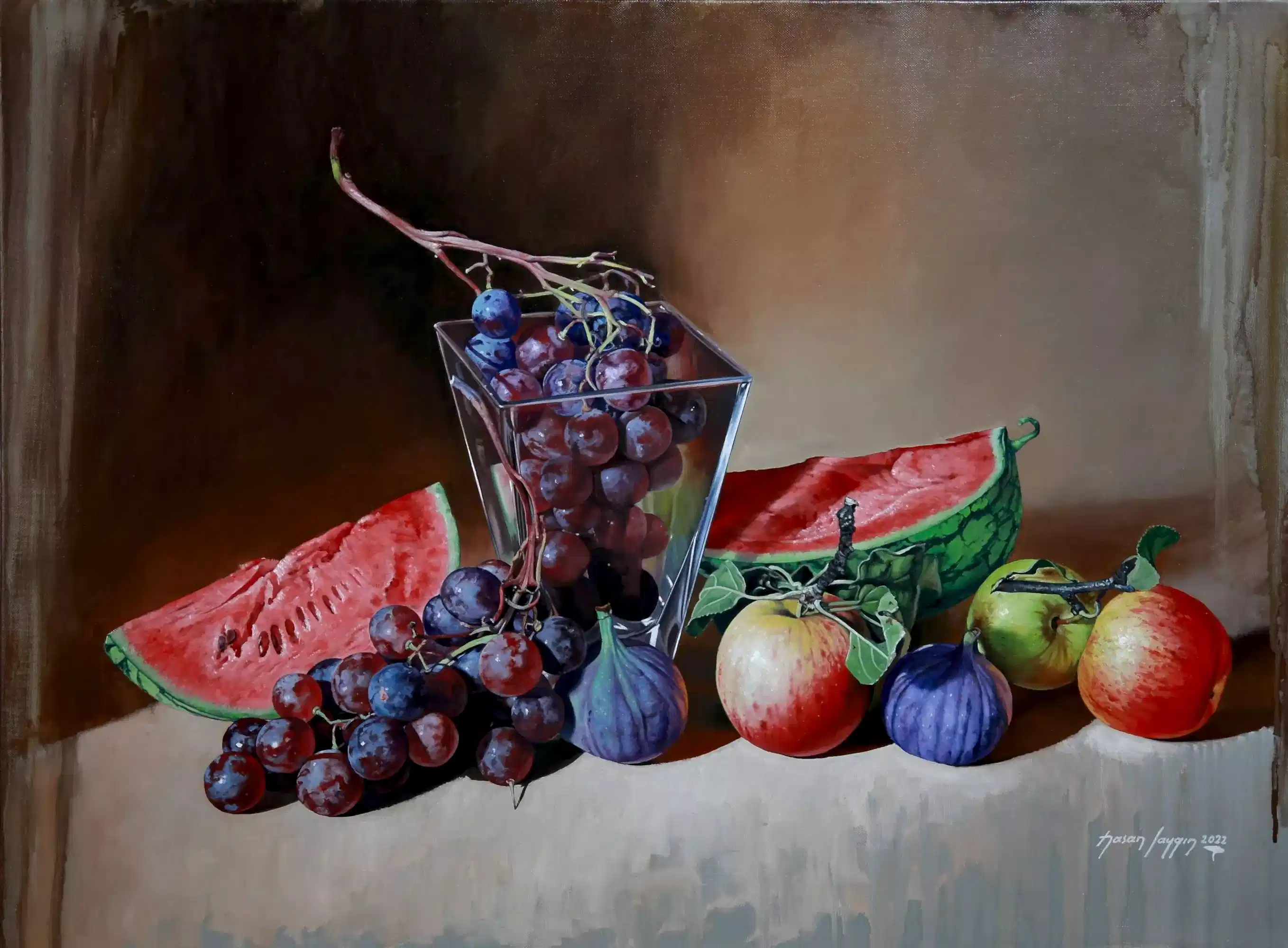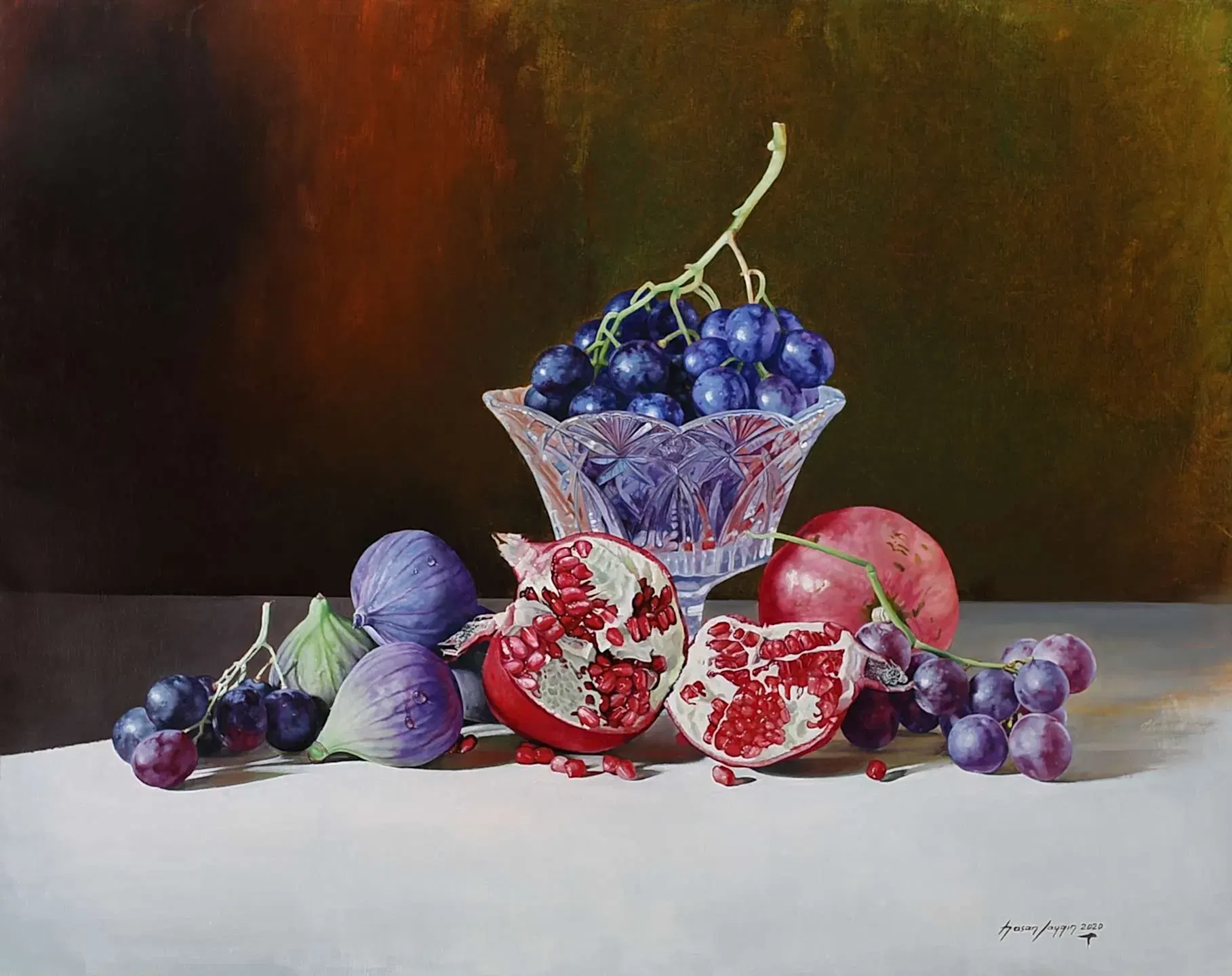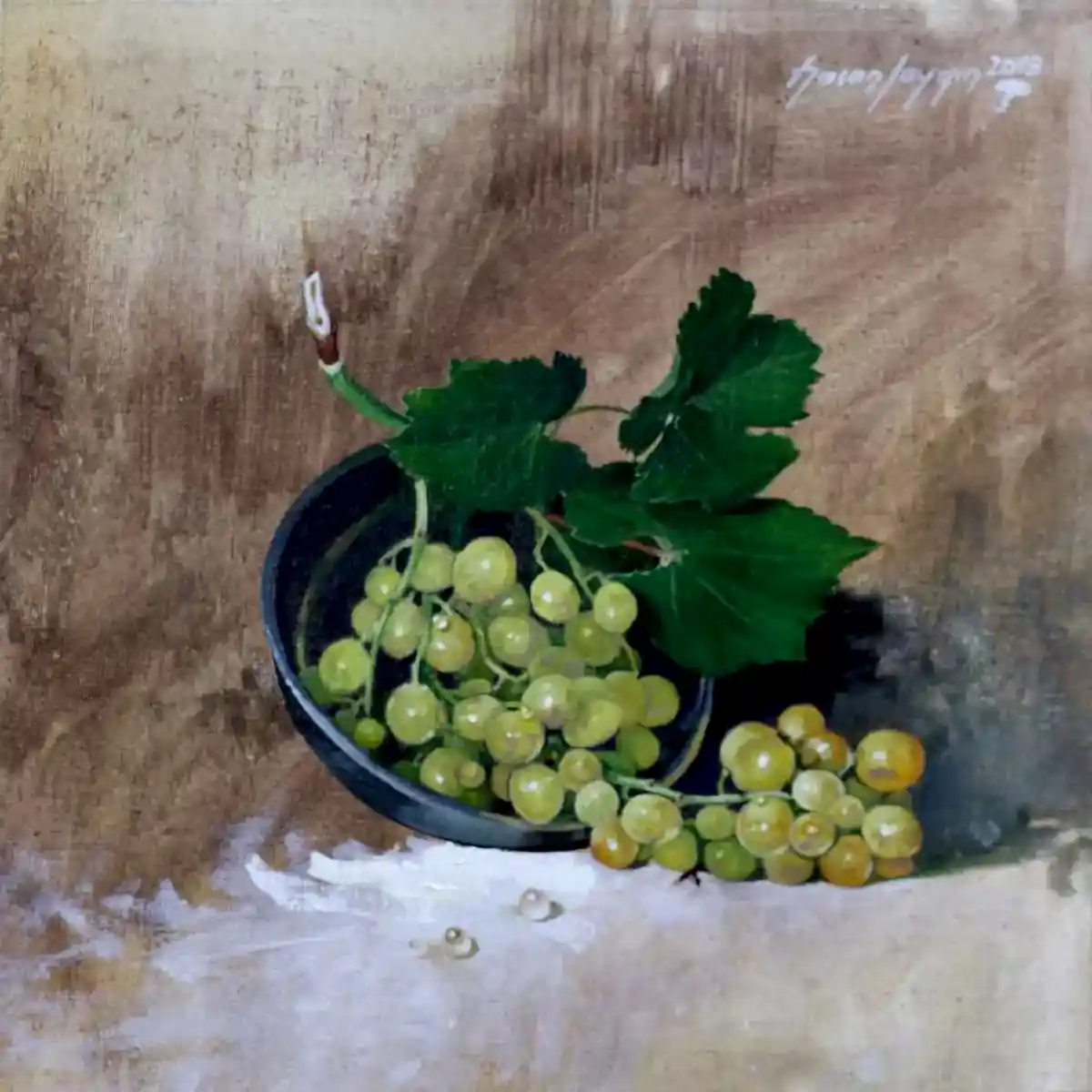Sergiyi İzle"Üzümlü Natürmort-Nature Morte Aux Raisins" 81x100 cm - Tuval üzeri yağlı boya 2018