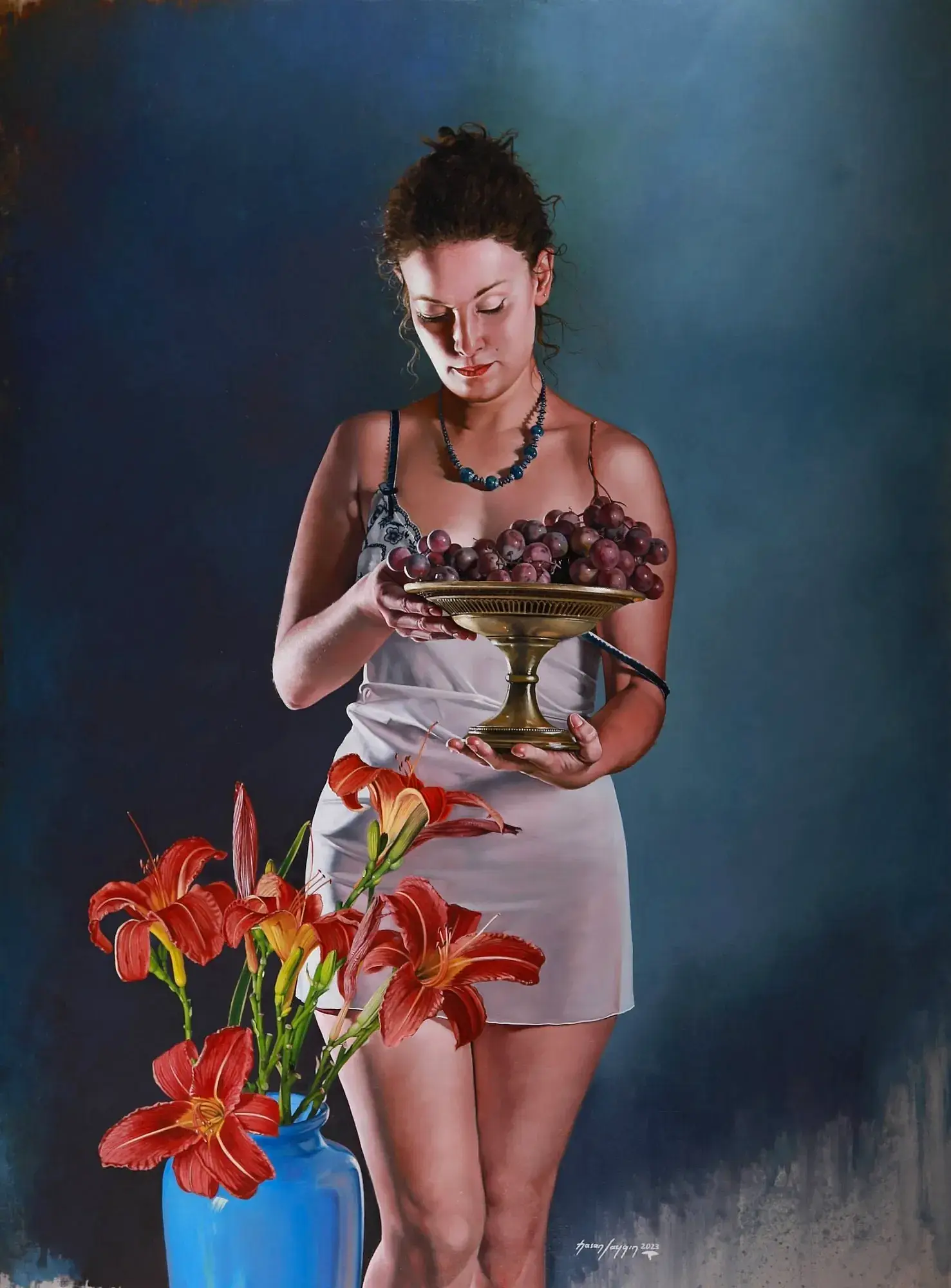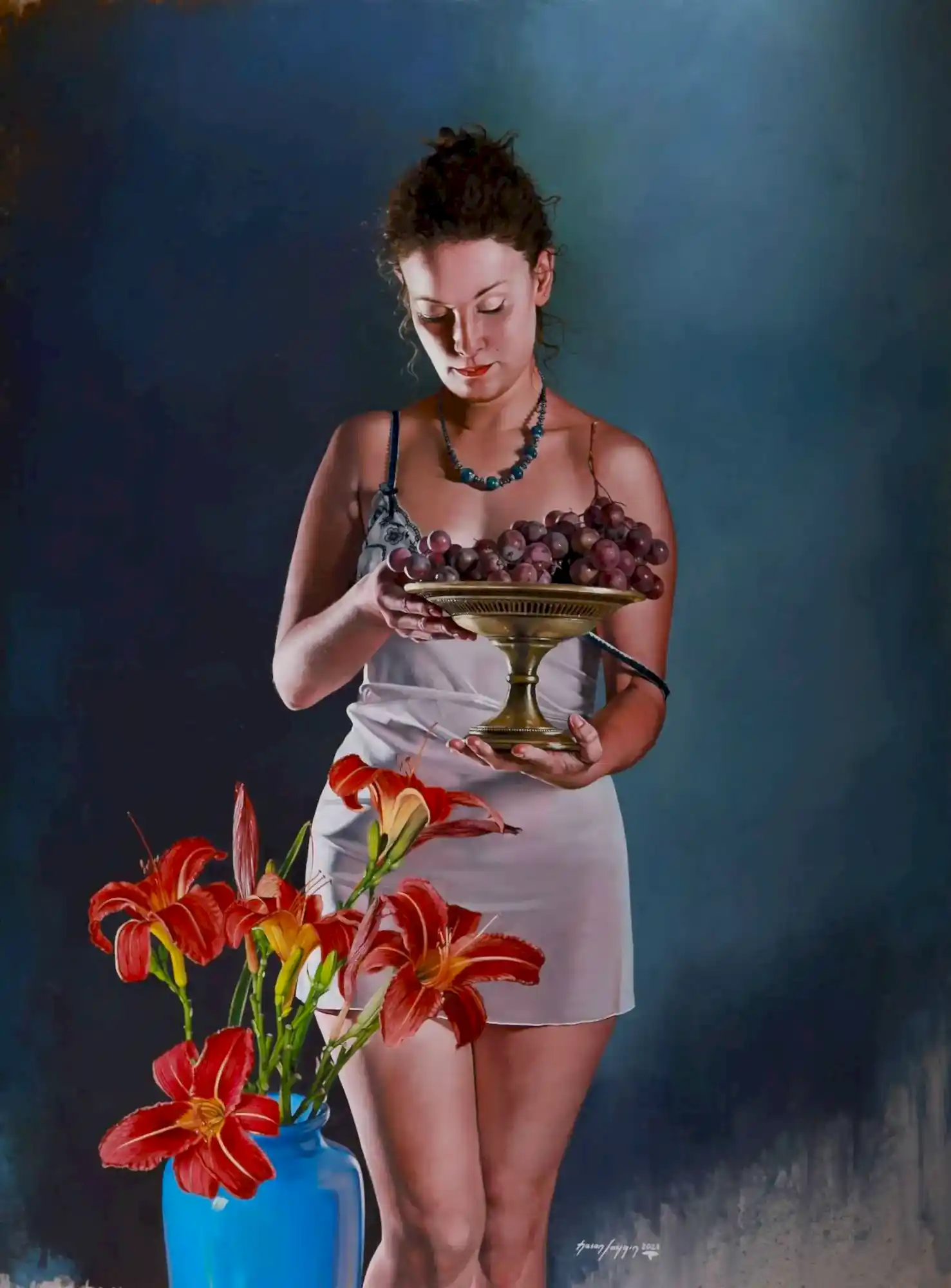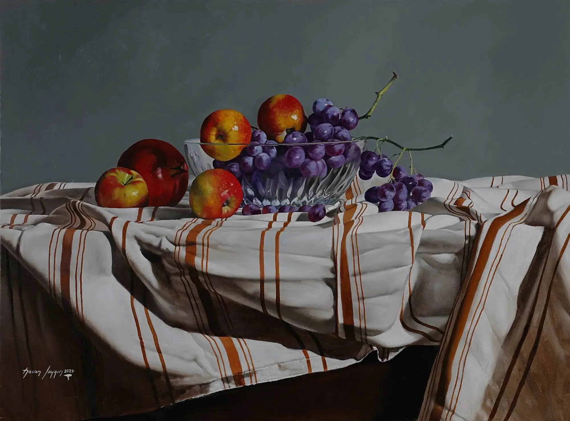 Sergiyi İzle"Üzümlü Natürmort-Nature Morte Aux Raisins" 81x100 cm - Tuval üzeri yağlı boya 2018