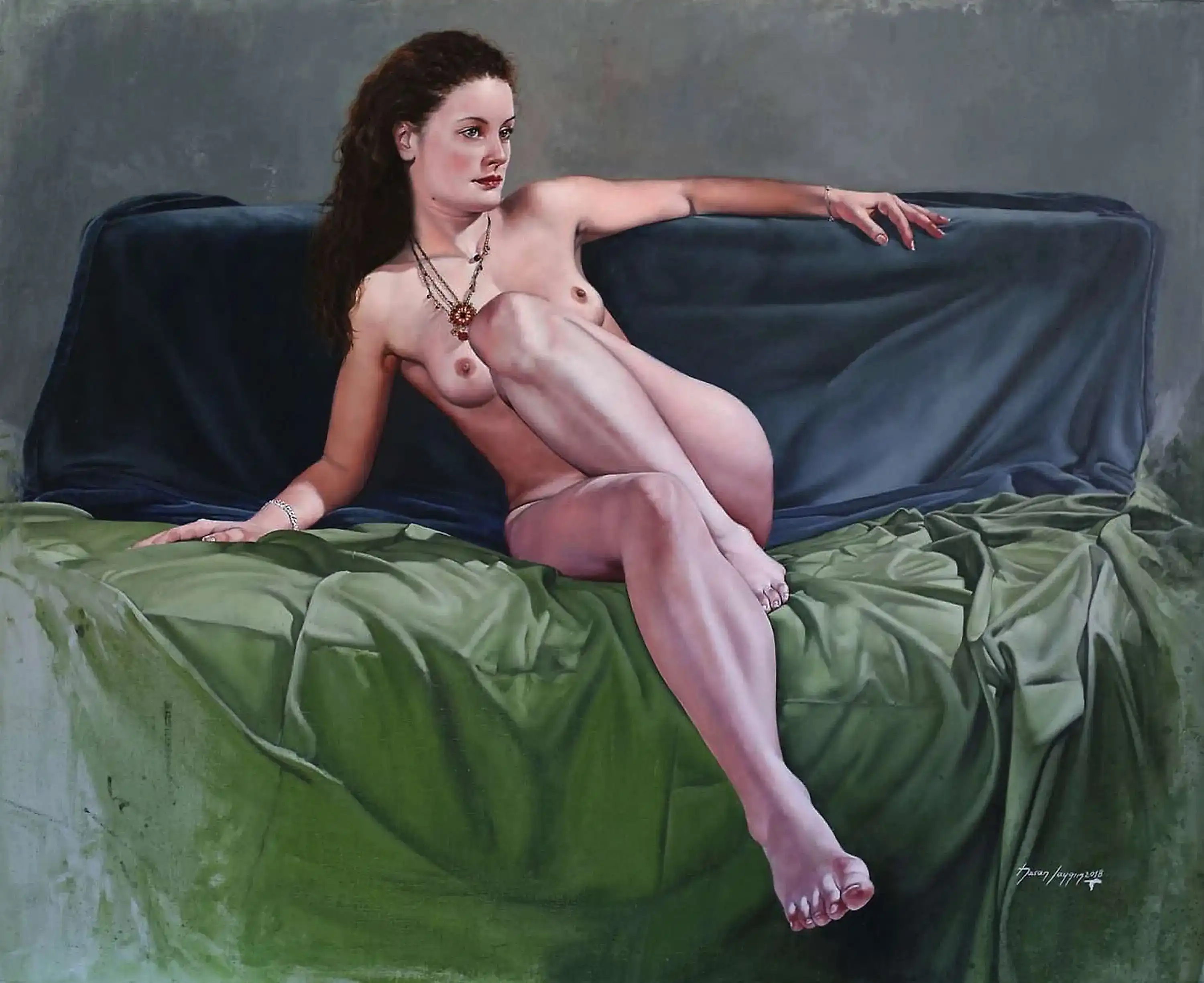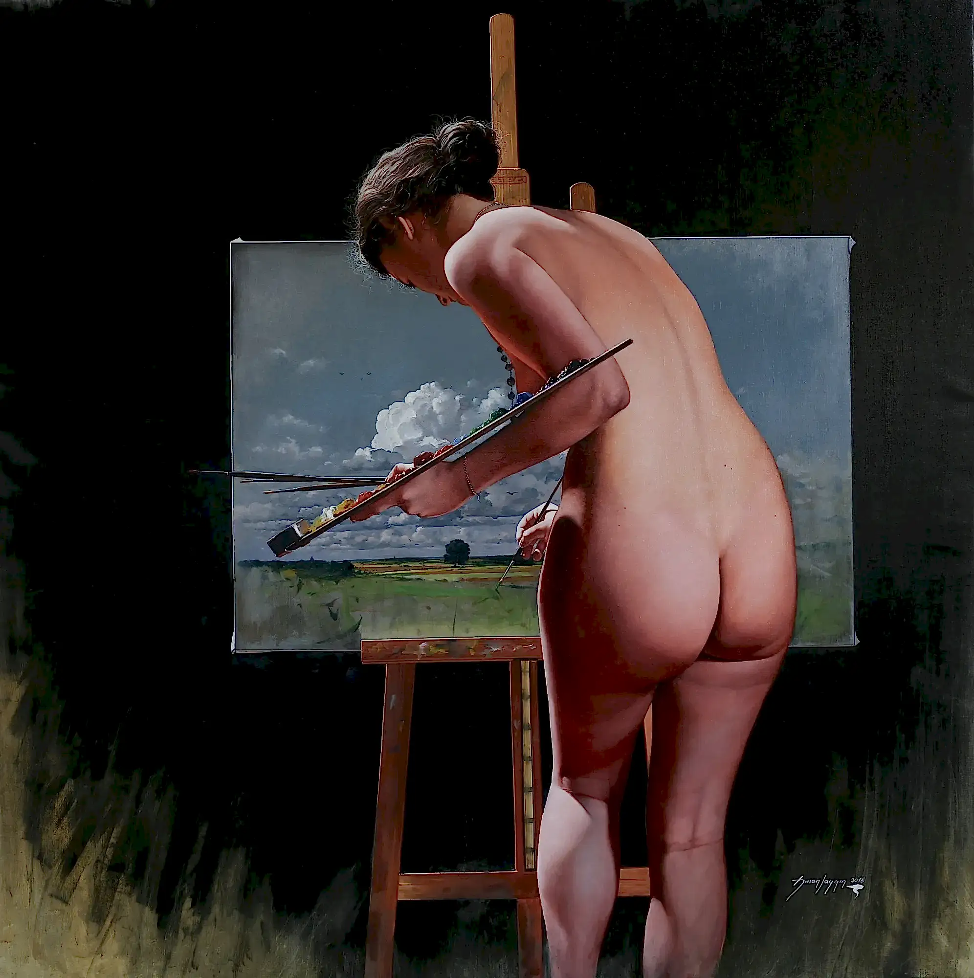 Hasan Saygın konularında rönesans ressamlarından, nü ve natürmortlardan esinlenmiştir. Realist (gerçekçi) calismaları ön plandadır. Yerine göre, geri planda modern renkler ve lekeleriyle çağdaş bir yorum kullanmıştır.