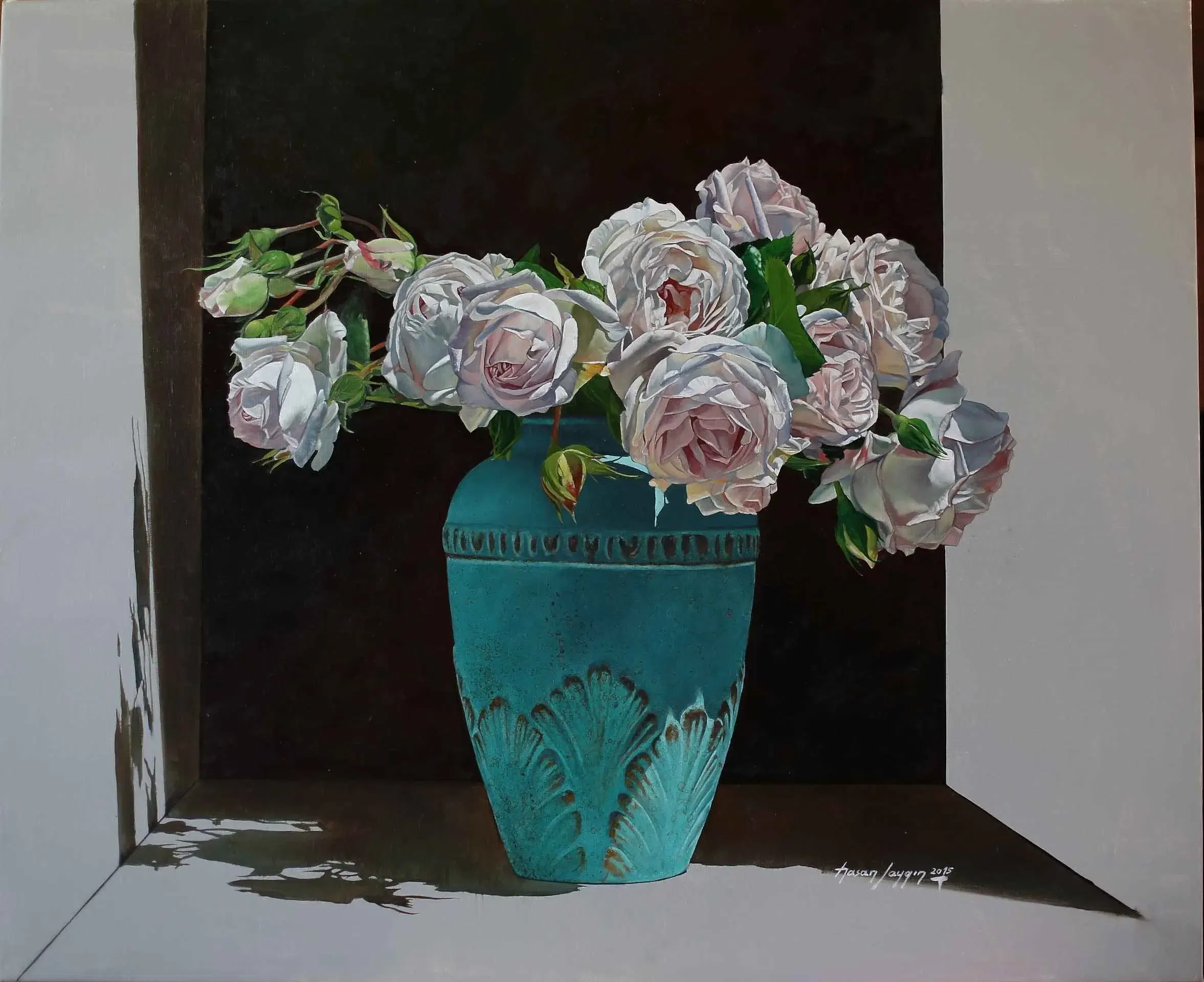 Hasan Saygın, Türkiye’de Galeri Soyut tarafından temsil edilmektedir ve bu galeride eserlerini sanatseverlerle buluşturmaktadır. Özellikle yağlı boya, pastel ve suluboya teknikleriyle hiperrealist portreler, natürmortlar ve peyzajlar yaratmaktadır. Sanatçının çalışmaları, izleyicilerine derin bir estetik deneyim sunarken, aynı zamanda geleneksel ve modern unsurları harmanlayan bir sanat anlayışını da yansıtır.