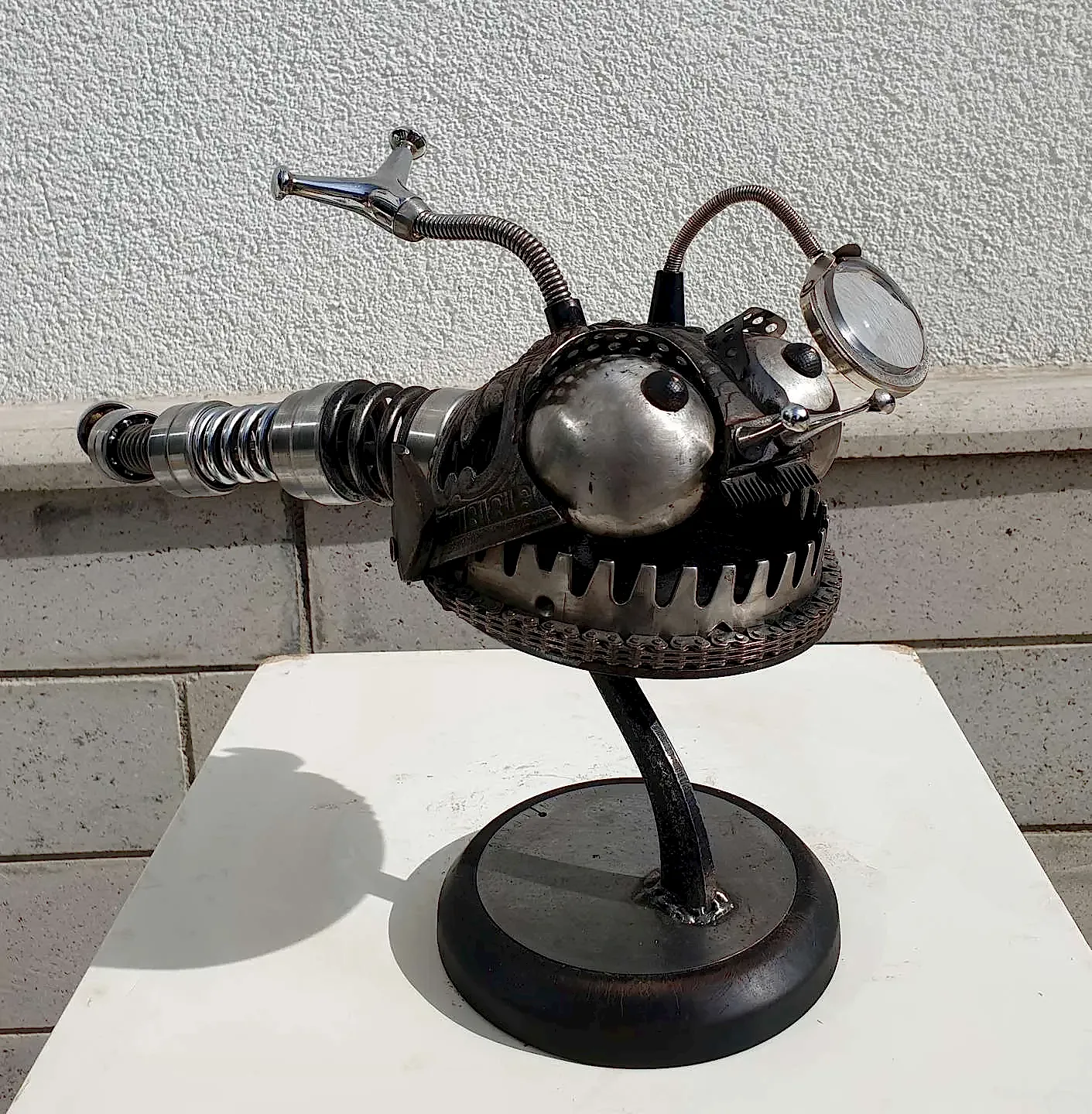 Atıl haldeki hurda eşyaları, ahşap, metal, cam gibi materyaller ile harmanlayarak