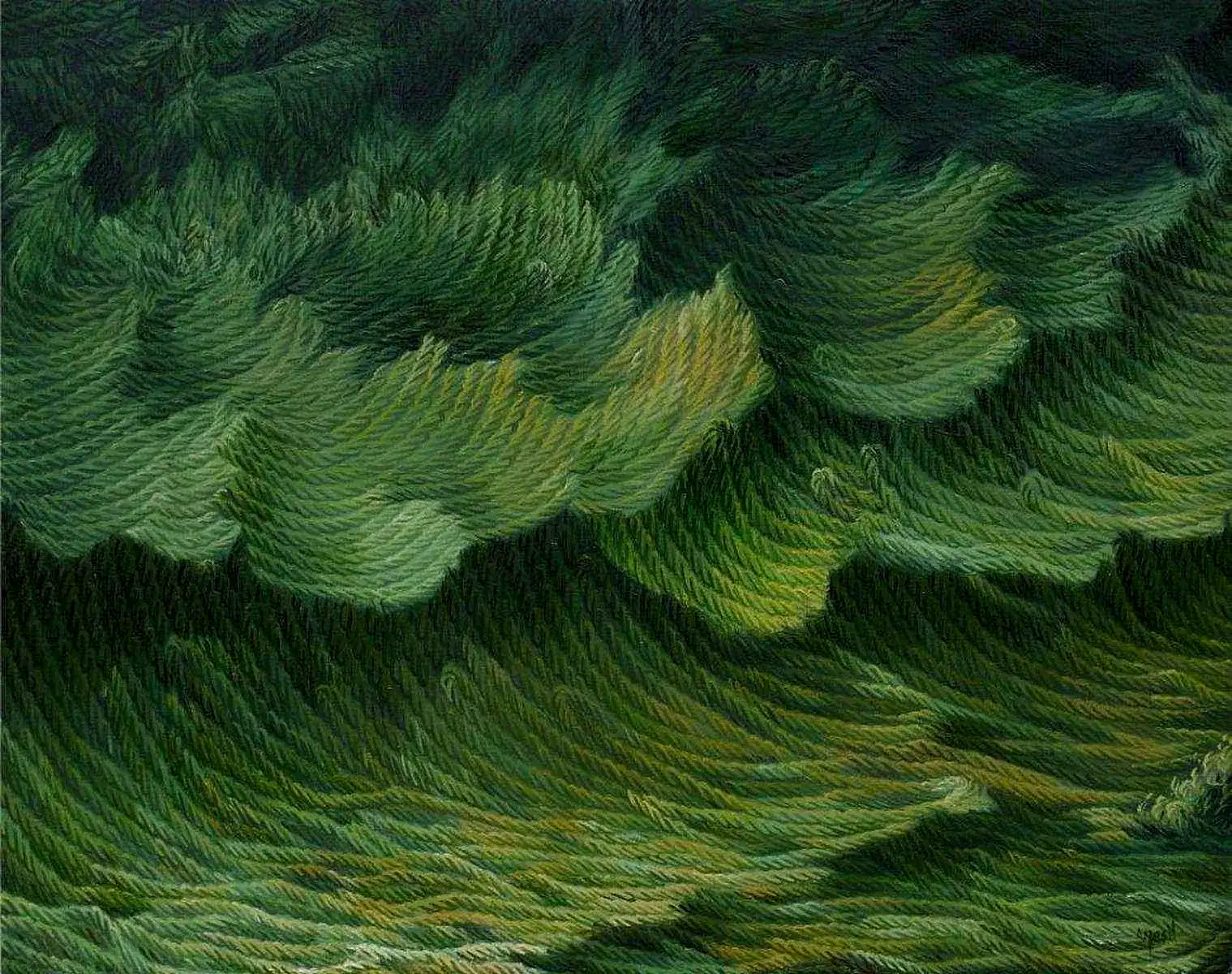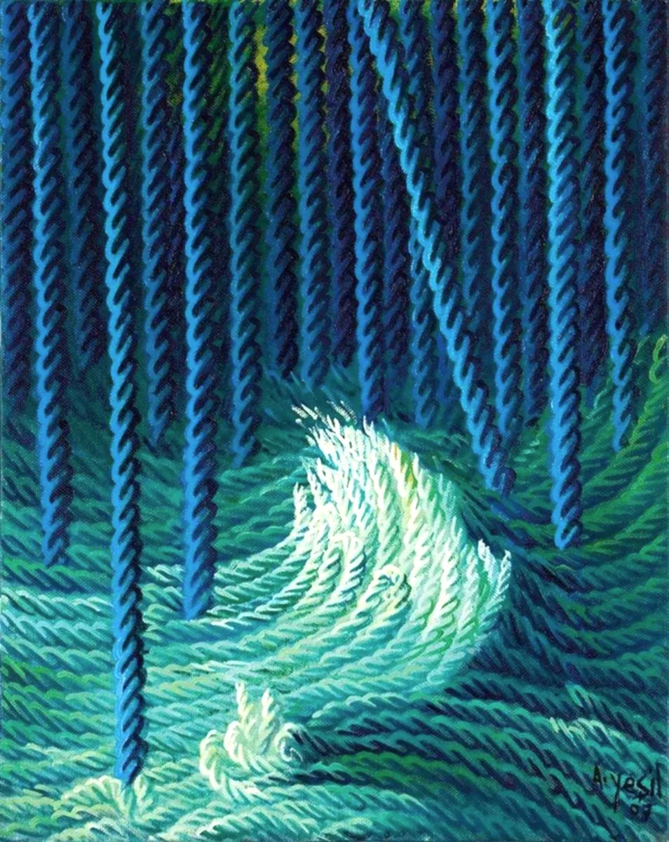 Sanat kariyerinin ilk dönemlerinde figüratif eserlerle dikkat çeken Yeşil, 1980-1989 yılları arasında kadın ve çocuk temalarını işlediği "Figür Dönemi"ni yaşamıştır. 1990'lı yıllardan itibaren, denize olan tutkusu ve annesinin terzi olmasından esinlenerek, ip ve halat imgeleri üzerine yoğunlaşmıştır. Bu imgeleri, sanatında sosyal, toplumsal ve kişisel temaları ifade etmek için kullanmıştır. Sanatçının ip ve halat temalı eserleri, bilinçaltı ve geçmiş özlemlerinin bir yansıması olarak değerlendirilebilir.