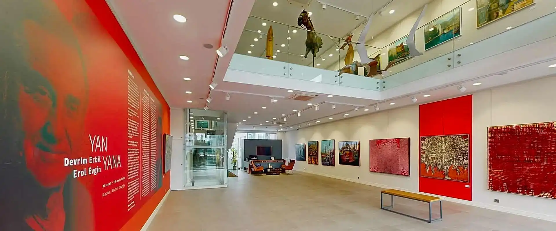 Her biri kendilerine özgü biçemlerle, yaşadıkları mekânlar üzerinden özgün, büyülü sanatsal yapıtlar üreten iki ünlü sanatçımız ressam Devrim Erbil ve müzisyen/ressam Erol Evgin’in “Yan Yana” adlı sergisi özel bir sanat buluşması. Büyük bir tutkuyla resmettikleri mekânların; belleğinin aynası, geçmişle gelecek arasındaki mevcudunun tutanakları gibi olan resimleriyle bir buluşma bu sergi.