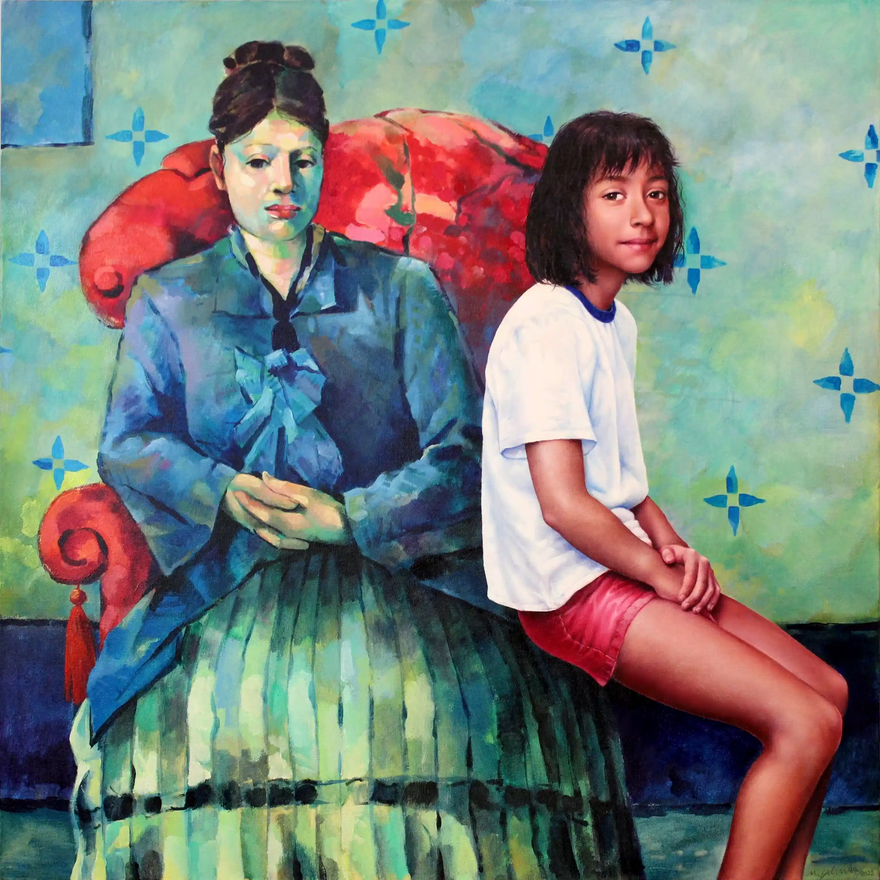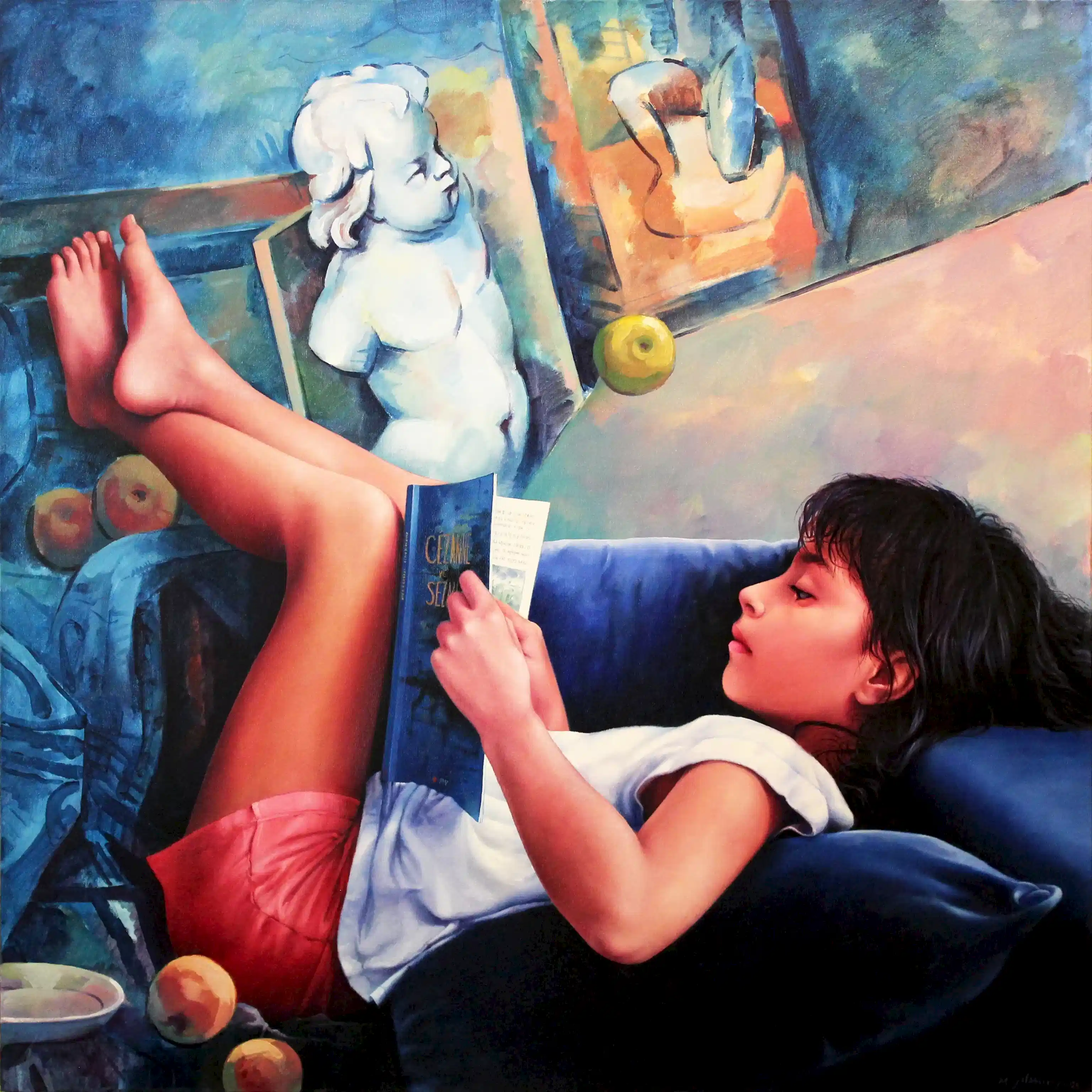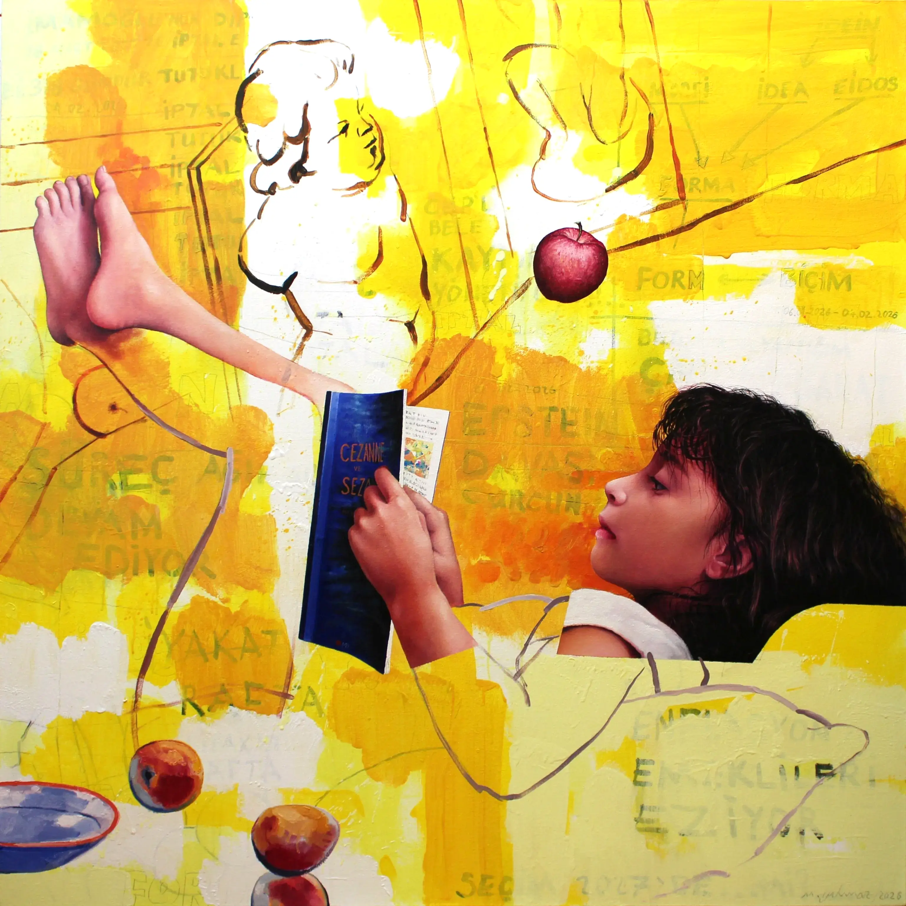 Mehmet Yılmaz, bu dizisinde kişisel bir bağdan yola çıkarak sanat tarihinin en güçlü figürlerinden biri olan Paul Cézanne ile kendi kızı Sezan’ı kavramsal bir düzlemde buluşturuyor. Sanatçı, "Sezan" isminin Türkçe kökenindeki "sez" ve "an" kelimelerinin yarattığı anlam katmanlarını, modern sanatın babası kabul edilen Cézanne’ın estetik mirasıyla harmanlıyor. Bu buluşma, sadece isim benzerliği üzerinden değil, "sezgi" ve "an" kavramlarının resim sanatındaki kalıcı izleri üzerinden şekilleniyor.