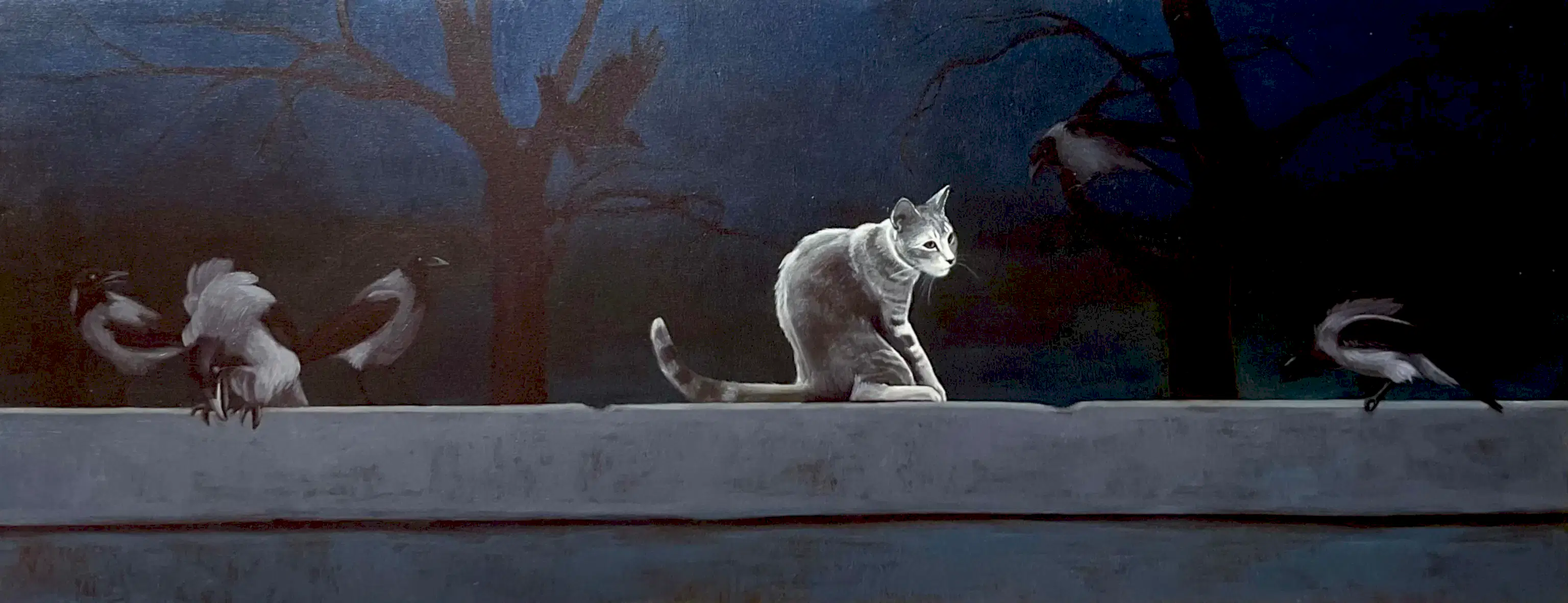 Figüratif resim temeli üzerine inşa ettiğim sanat anlayışım doğrultusunda, genellikle, yalın ve dengeli kompozisyonlar oluşturuyorum. Tüm çalışmalarım içerisinde tek bir figürden oluşan resimler önemli bir yer tutmaktadır. Tasvir ettiğim figürlerle -bir insan, hayvan ya da nesne olabilir- anlık durumlar ve ruh hallerini ifade ediyorum veya belirli bir süreci ifade eden temsil olanaklarını araştırıyorum. Anlatımın sınırlarını net bir şekilde belirginleştirmiyorum ve her izleyenle birlikte ifadenin çeşitlenmesini sağlayacak alanlar sunmak istiyorum. Sergide yer alan karga resimlerimde olduğu gibi biçimsel olarak etkileyici bulduğum elemanlar, insan figürü ya da tercih ettiğim hayvan ve nesneler ile zihnimdeki imgeleri etkili biçimlere dönüştürerek yansıtmayı amaçlıyorum. Son çalışmalarımda hayatımın farklı dönemlerinde aklıma kazınmış popüler veya underground kültür imgelerini kompozisyonlarıma dahil ederek illüstratif öğeler ile resimsel form arasındaki dengeyi sorguluyorum.